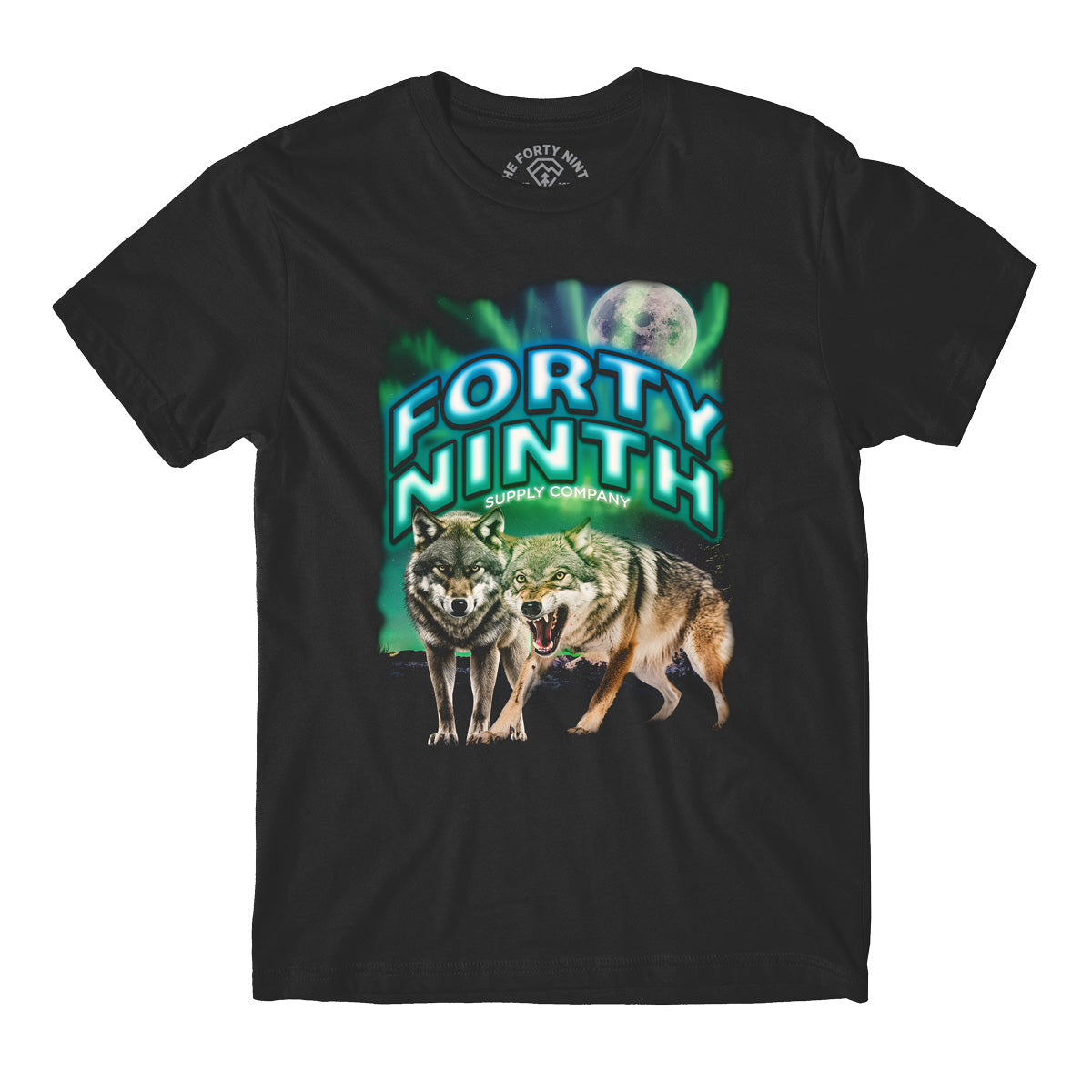 Forty Ninth Vintage Wolf Black T-Shirt. Full color graphic on the front.